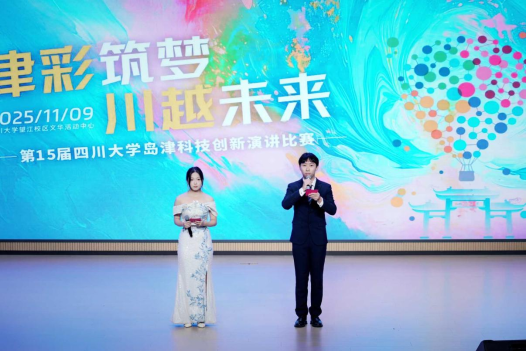 2025年11月9日下午,第十五届四川大学岛津科技创新演讲比赛决赛在望江文华活动中心演播厅如期举办。岛津企业管理(中国)有限公司小倉一郎副董事长、黄涛宏部长、郑健副部长、廖春丽经理等工作人员,中国电建集团成都勘测设计研究院周麒雯教授,成都艾本立科技有限公司合伙人杨燕婷总经理、四川大学析测试中心杨杰教授、侯贤灯教授,化学学院校外创新创业导师马俪老师,化学学院党委书记谢均教授、院长吕弋教授、胡常伟教授、陈华教授、党委副书记肖波老师、张立春副教授出席了本次决赛并担任评委。