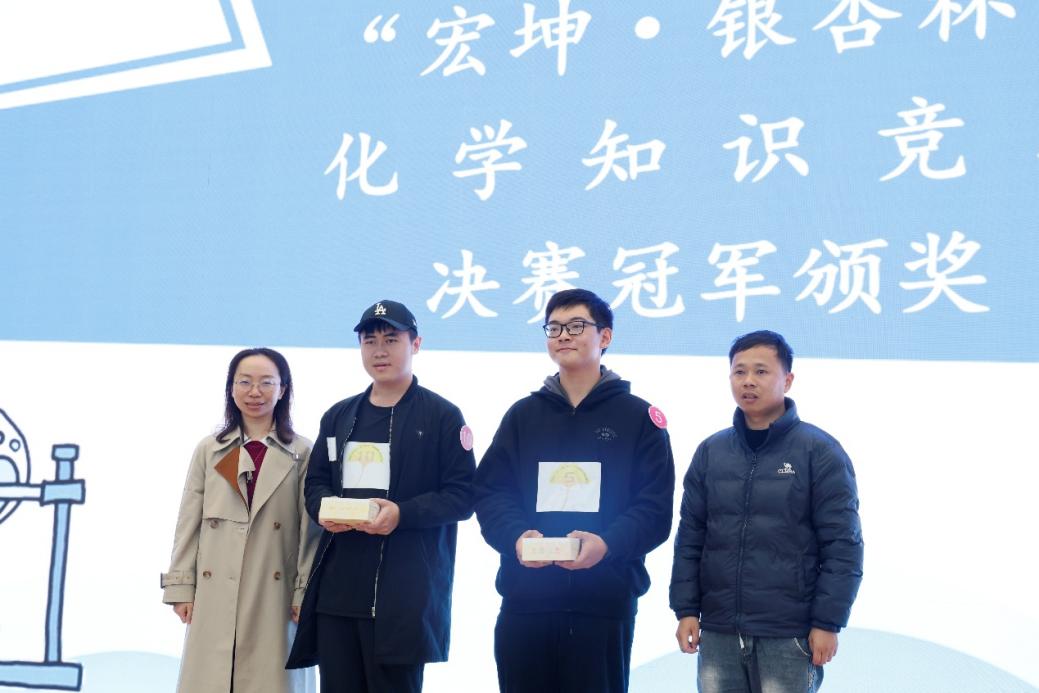 最后一轮“巅峰对决”中,化学学院2025级王俊和同学与化学学院2025级王语欣同学展开终极较量。最终,王俊和同学凭借更胜一筹的知识储备与临场应变能力,成功斩获本次决赛的冠军。最后,来俏老师与浩涛涛老师为此次决赛的专业组冠军王俊和同学和非专业组冠军张溍桐同学颁发奖品,见证这一荣耀时刻。