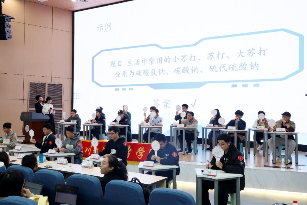 2025年11月2日上午,由宏坤集团赞助,“挑战杯”学生科技节组委会支持、四川大学化学学院承办的四川大学第十二届“宏坤·银杏杯”化学知识竞赛决赛在四川大学江安校区水上报告厅成功举办,四川大学化学学院党委副书记肖波老师、教导员王毅老师、化学学院全体辅导员老师作为嘉宾出席本次决赛。
