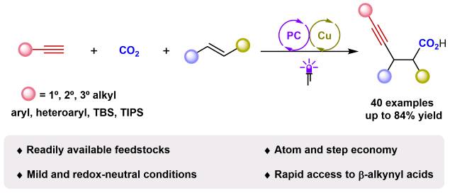 90.Q. Fu, Z.-Y. Bo, J.-H. Ye, T. Ju, H. Huang, L.-L. Liao, D.-G. Yu*, Transition metal-free phosphonocarboxylation of alkenes with carbon dioxide via visible-light photoredox catalysis. Nat. Commun. 2019, 10, 3592.