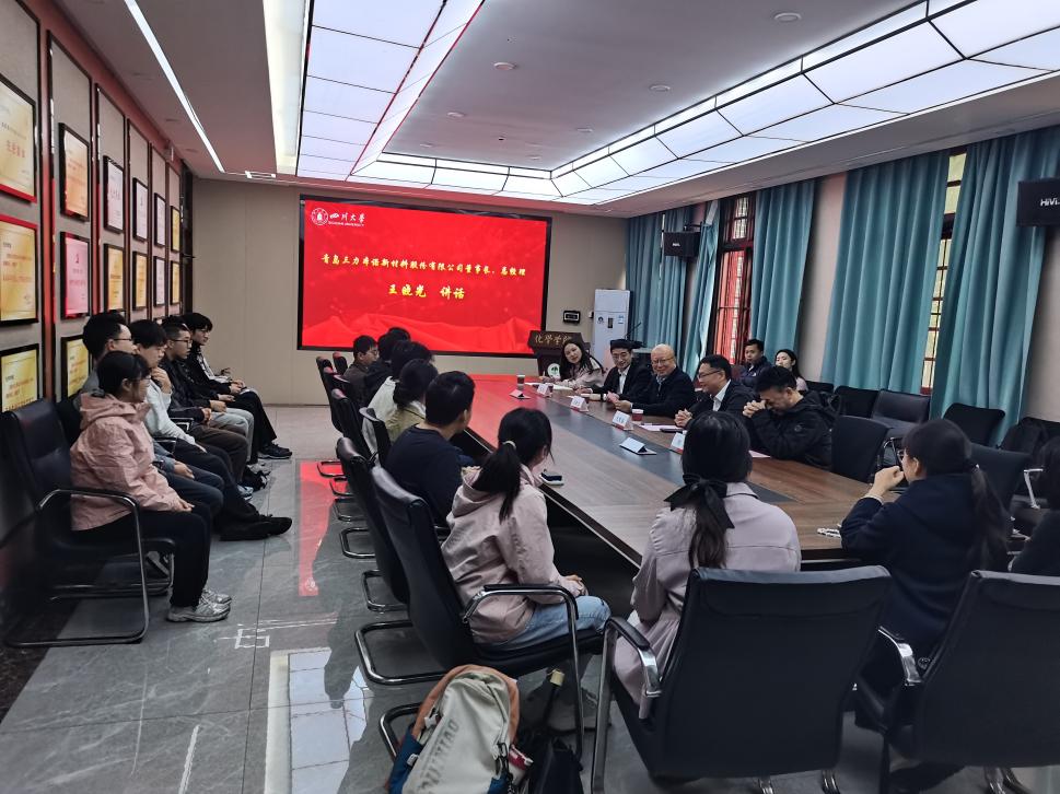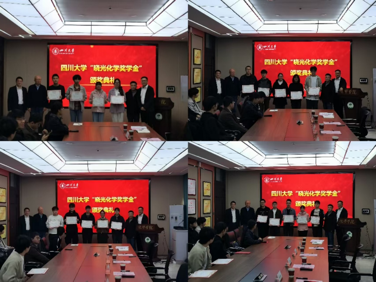 11月7日上午,2024-2025年度“晓光化学奖学金”颁奖仪式在化学馆122会议室举行。化学学院79级校友、青岛三力本诺新材料股份有限公司董事长、总经理王晓光先生,青岛三力本诺新材料股份有限公司副总经理王智猛先生、四川大学化学学院教授陈华老师、化学学院党委副书记肖波及辅导员老师出席了此次颁奖仪式。