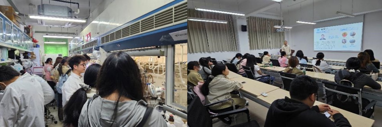 最后,访学活动进入分组交叉参观实验室环节。30名同学分为两组,分别交叉走进位于新材化楼的余达刚教授和郑成斌教授课题组。在交流过程中,同学们认真聆听、积极思考,展现出卢嘉锡班扎实的专业基础与浓厚的科研兴趣。
