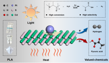 Yuan Xiang, Jin Zhang, Fei Huang, Nantian Xiao, Yiyi Fan, Junhao Zhang, Heng Zheng, Jinwei Chen* and Fan Zhang*. One‐pot photothermal upcycling of polylactic acid to hydrogen and pyruvic acid. Chinese J. Catal., 2024, 59, 149–158.