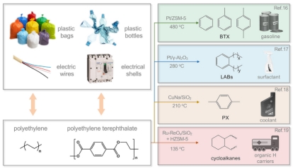 塑料高分子是社会发展不可或缺的材料。然而,大部分塑料制品短暂使用后便成了“废料”,造成严重的资源浪费,导致“白色污染”和碳排放等全球共性问题。实现废弃碳资源(塑料、CO2等)的高效循环再利用是解决上述问题的根本办法,催化升级转化CO2和可控降解塑料高分子为高附加值产品是实现这一目的最有效的手段之一。