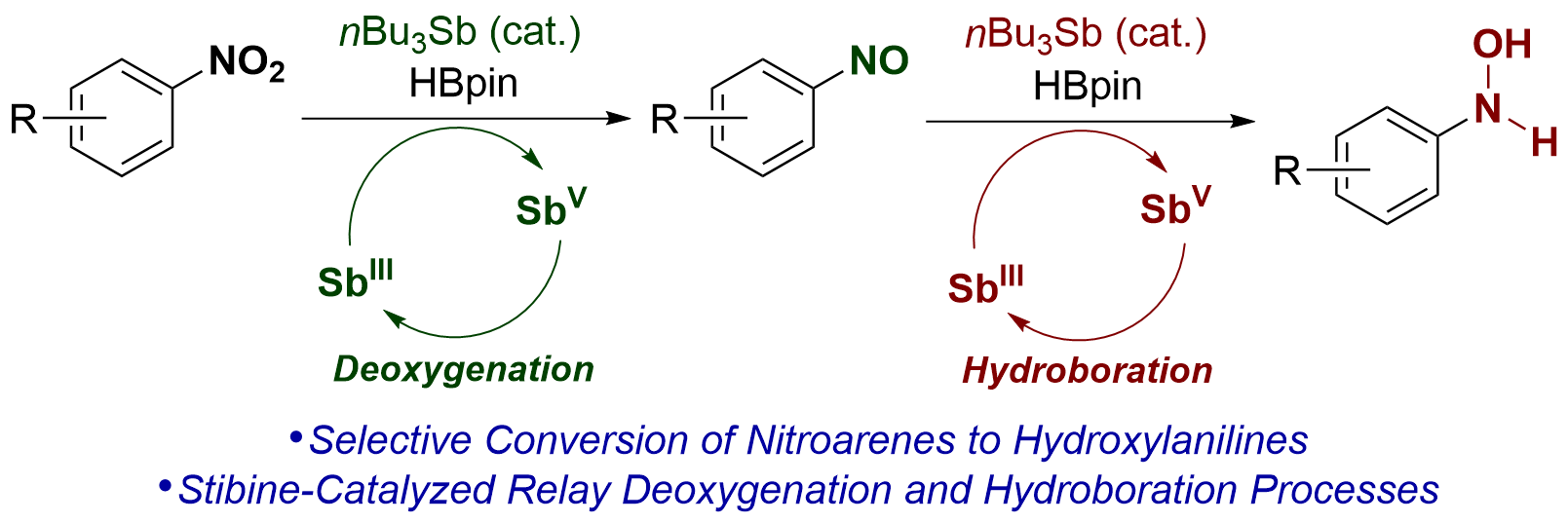 4.Lu Zhao,† Zichen Zhang,† Kunlong Li, and Jiliang Zhou,* Stibine-catalyzed selective conversion of nitroarenes to hydroxylanilines through deoxygenation and hydroboration processes Chem. Commun. 2026, DOI: 10.1039/D6CC00118A.