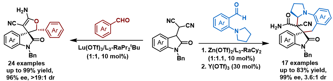 11.Zhu, C. H.#; Zhou, Y. Q.#; Zhang, J.; Li, J. F.; Zhang, Y. X.; Wang, F.; Feng, X. M.*; Dong, S. X.* Rare-Earth Metal Catalyzed Asymmetric Addition/Hydroamidination of Nitriles and Allylamines for the Concise Synthesis of Chiral Imidazolines. CCS Chem. 2025, 7, 148.