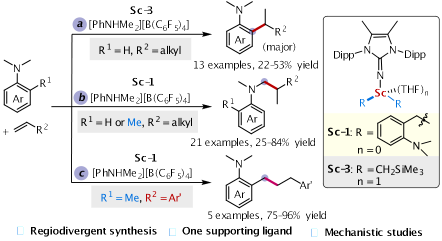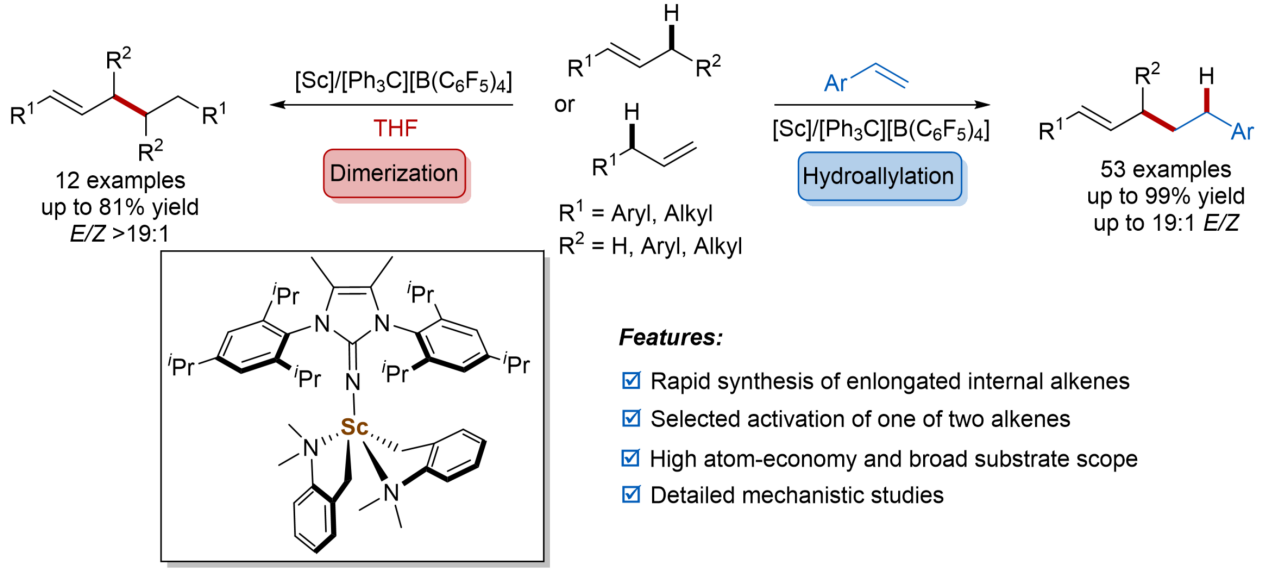 3.Wang, S. Y. #; Ning L. C.#; Mao, T.; Zhou, Y. Q.; Pu, M. P.; Feng, X. M.; Dong, S. X.* Anti-Markovnikov Hydroallylation Reaction of Alkenes via Scandium-Catalyzed Allylic C‒H activation. Nat. Commun. 2025, 16, 1423.
