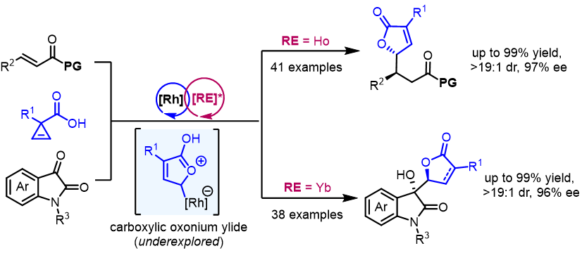 34.Xu, C. R.; Qiao, J. L.; Dong, S. X.*; Zhou, Y. Q.; Liu, X. H.; Feng, X. M.* Asymmetric Synthesis of Dihydro-1,3-Dioxepines by Rh(II)/Sm(III) Relay Catalytic Three-Component Tandem [4+3]-Cycloaddition. Chem. Sci. 2021, 12, 5458. This article is part of the themed collection: 2021 Chemical Science HOT Article Collection. Highlighted by Synfacts 2021, 17, 0518.