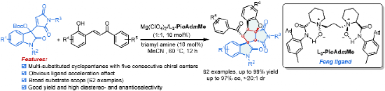 42.Luo, Y.; Zhang, H.; Wang, S. Y.; Zhou, Y. Q.; Dong, S. X.*; Feng, X. M.* Asymmetric Catalytic Diverse Ring Opening/Cycloadditions of Cyclobutenones with (E)-Alkenyloxindoles and (E)-Dioxopyrrolidines. Org. Lett. 2020, 22, 2645.