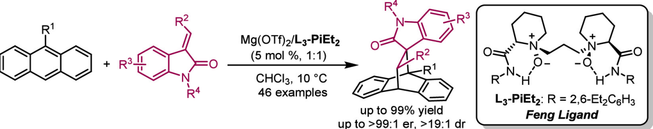 14.Yang, G. F.; Yang, L. Q.; Liu, Z. Z.; Song, Y. L.; Qu, Y. H.; Dong, S. X.*; Feng, X. M.* Construction of Chiral Spiro-Bridged Rings with Four Consecutive Stereocenters via Dearomative Diels–Alder Reactions of Anthracenes. Org. Lett. 2025, 27, 5112.