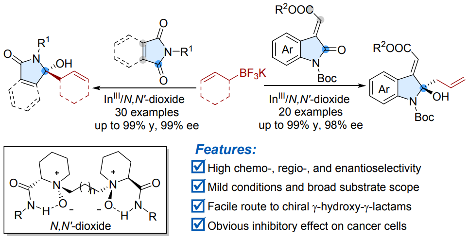 37.Tang, X. X.; Su, Z. S., Yan, L. Q.; Tang, Q.; Dong, S. X.*; Lin, L. L. Xiaoming Feng, X. M.* Diastereo- and Enantioselective Synthesis of 3-Allyl-3-hydroxyoxindoles via Allylation of Isatins. Org. Lett. 2021, 23, 8419.