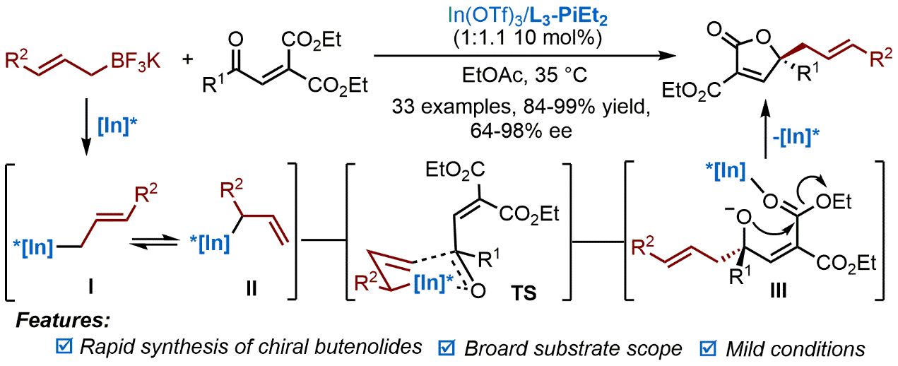 32.Tang, X. X.; Su, Z. S.; Lin, Q. C.; Lin, L. L.; Dong, S. X.*; Feng, X. M.* Asymmetric Catalytic α-Selective Allylation of Ketones with Allyltrifluoroborates using Dual-functional Chiral InIII/N,N′-dioxide Complex. Chin. J. Chem. 2022, 40, 1793.
