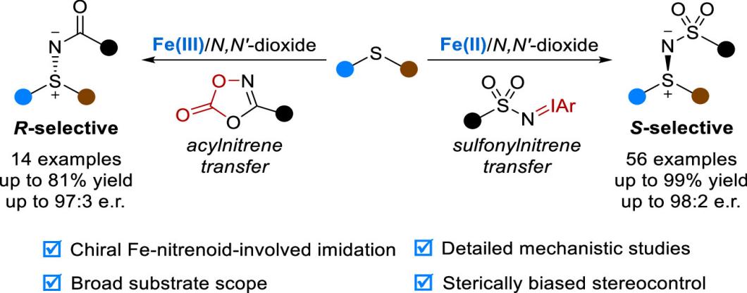 4.Liu, Z. Z. #; Wu, H. L. #; Zhang, H. L.; Wang, F.; Liu, X. H.; Dong, S. X. *; Hong, X. *; Feng, X. M. * Iron-Catalyzed Asymmetric Imidation of Sulfides via Sterically Biased Nitrene Transfer. J. Am. Chem. Soc. 2024, 146, 18050.